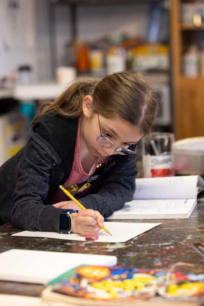 Xenia, age 10, takes private voice lessons and visual art classes at PMAC. Following in her family’s artistic footsteps makes Xenia feel like part of something. “I think it’s cool,” she declares, “because my great-grandma did art, and then my grandma did art. My mom does art. Right now, I’m doing it.”